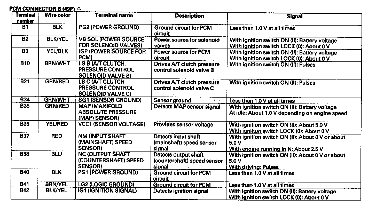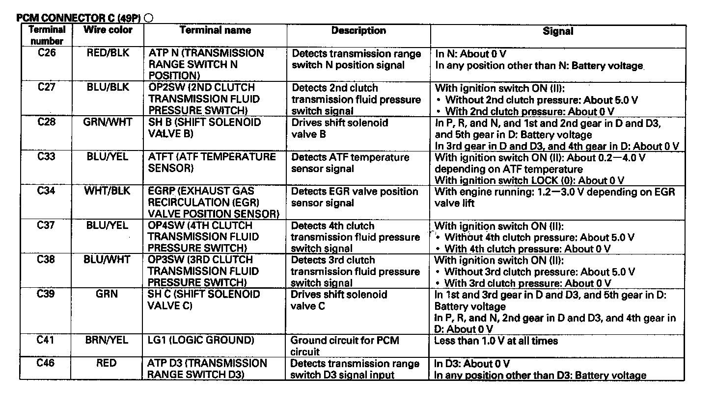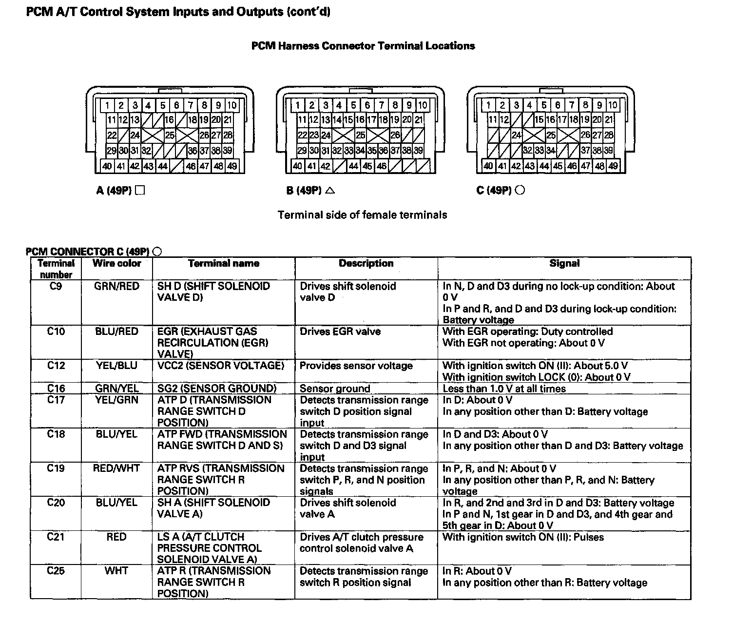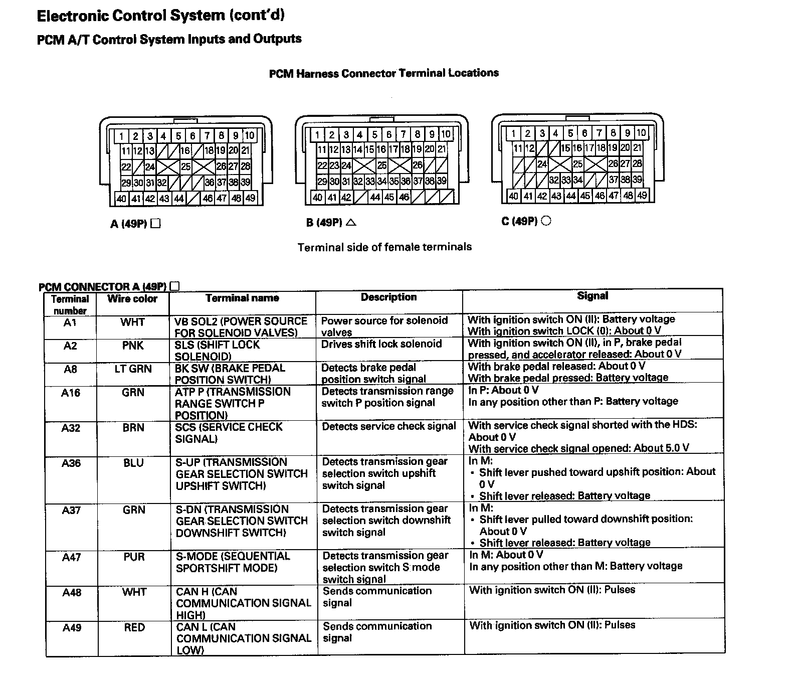 PCM A/T Control System Inputs and OutputsPCM A/T Control System Inputs and Outputs (Part 1):