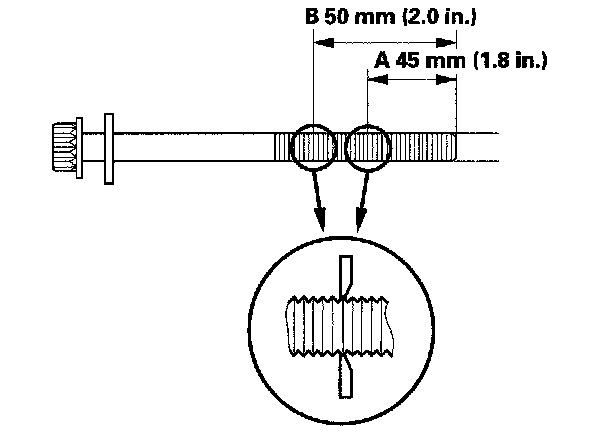 If either diameter is less than 11.3 mm (0.44 in.), replace the cylinder head bolt.