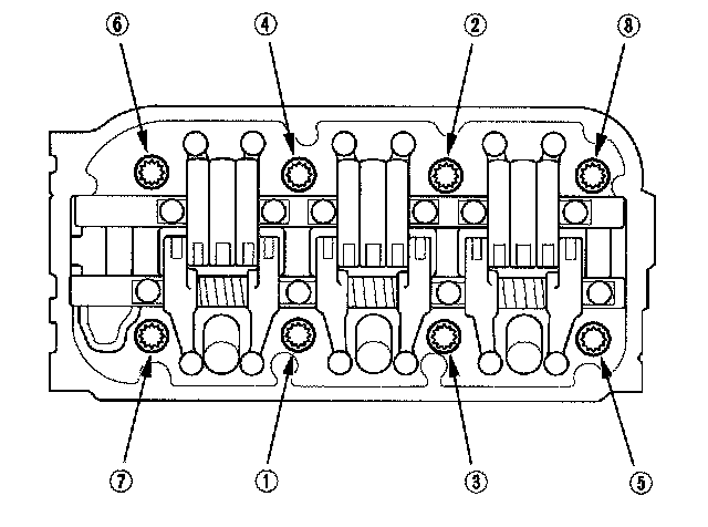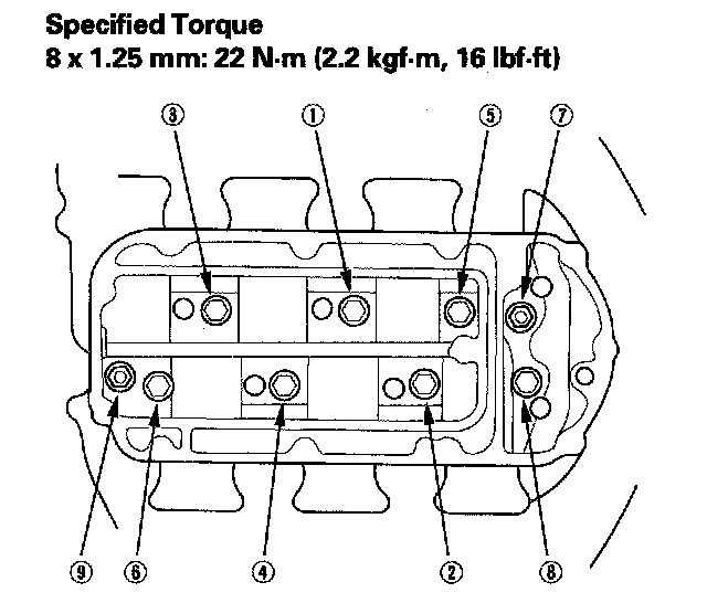 Tighten the cylinder head bolts in sequence to 30 N-m (3.0 kgf-m, 22 lbf-ft).
