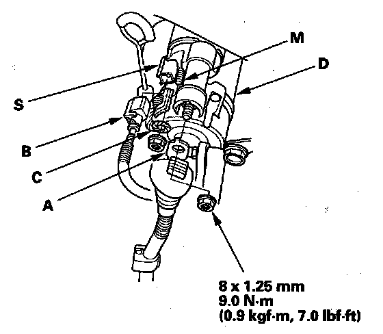 5. Check the hold-in coil for continuity between the S terminal and the armature housing (ground) (D). There should be continuity.
