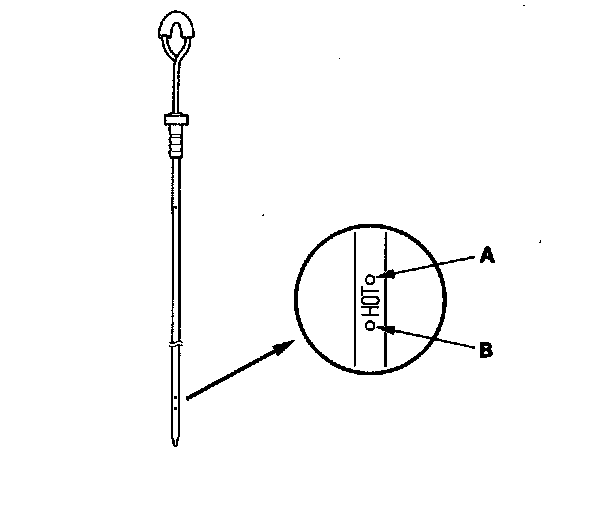 5. Remove the dipstick and check the fluid level. It should be between the upper mark (A) and lower mark (B).