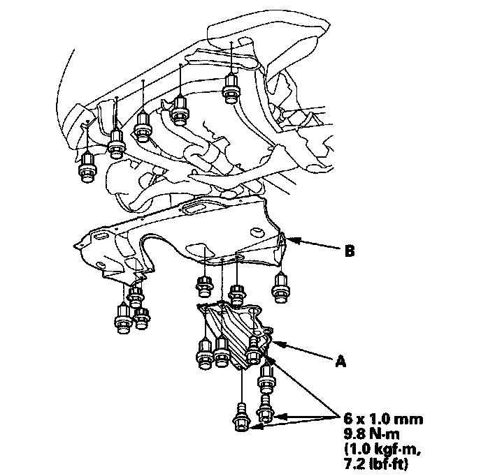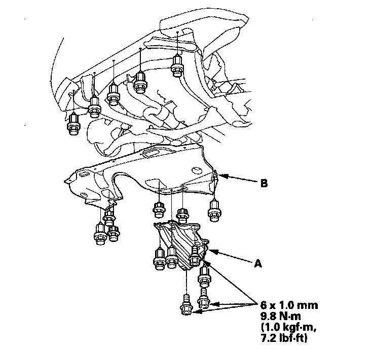 2. Remove the transmission undercover (A) and splash shield (B).