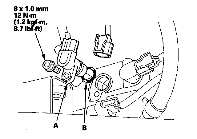 5. Install the new O-ring (B) on the new input shaft (mainshaft) speed sensor, then install the input shaft (mainshaft) speed sensor.