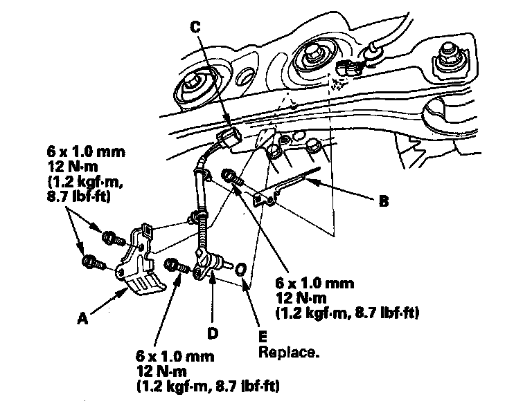 4. Install the differential fluid temperature sensor with a new O-ring (E) in the reverse order of removal.
