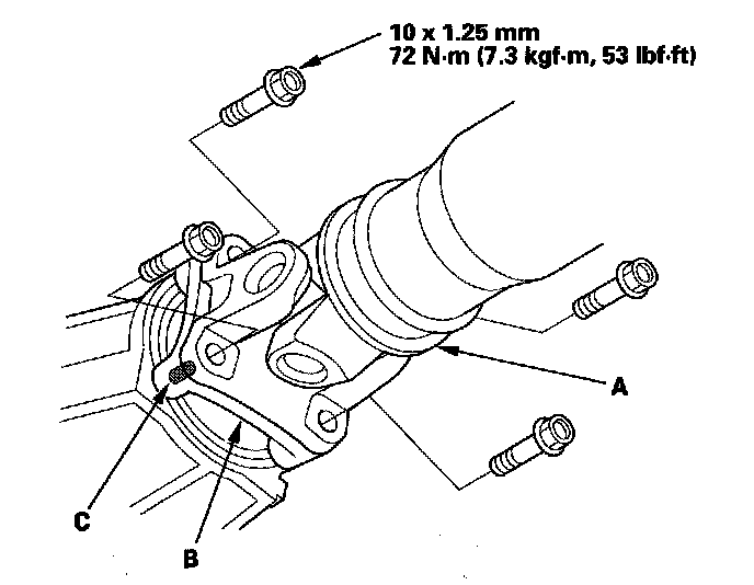 3. Install the propeller shaft (A) to the transfer companion flange (B) by aligning the reference mark (C).