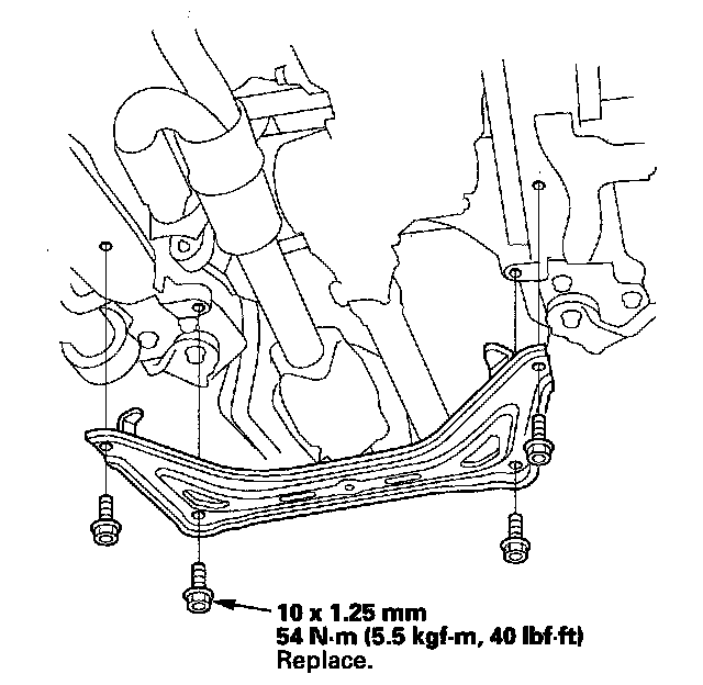 6. Install the front subframe stiffener with the new mounting bolts.