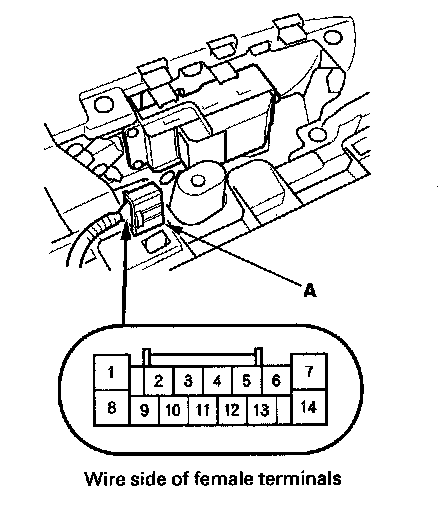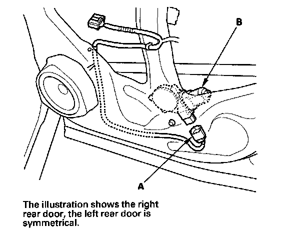 Rear Power Window Motor Test1. Remove the door panel, and disconnect the rear power window switch 14P connector (A).