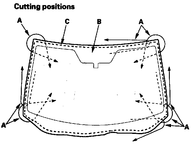 - When replacing a broken windshield, a commercially available windshield cutter can be efficiently used for cutting the adhesive. For details, follow the instructions of the tool manufacturer.