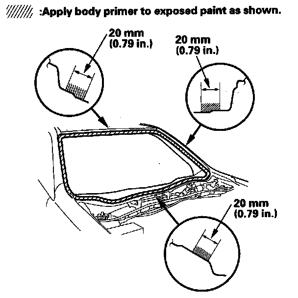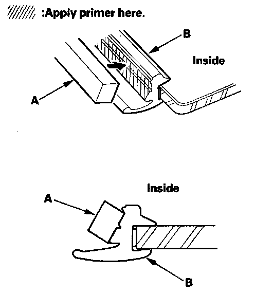 - Never touch the primed surfaces with your hands. If you do, the adhesive may not bond to the windshield properly, causing a leak after the windshield is installed.