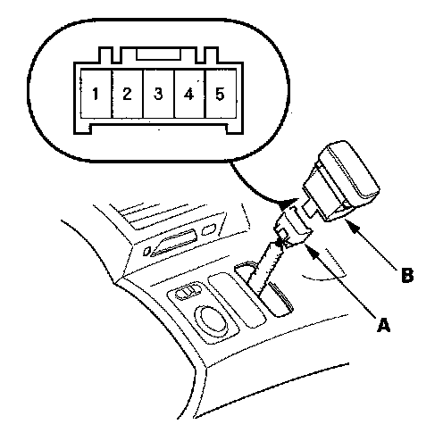 2. Disconnect the 5P connector (A) from the headlight washer switch (B).