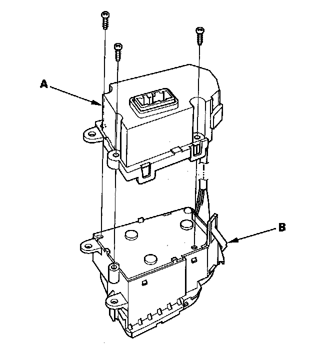 2. Remove the screws and cover (A) from the driver's climate control switch (B).