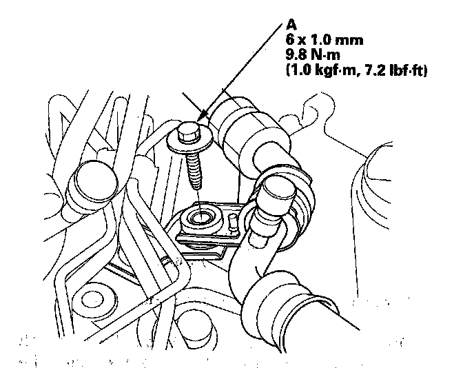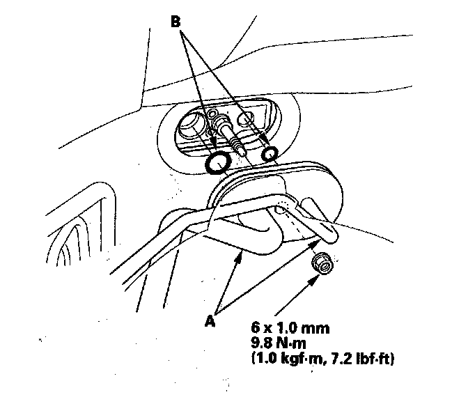 3. Remove the nut, then disconnect the A/C lines (A) and remove the O-rings (B) from the evaporator core.