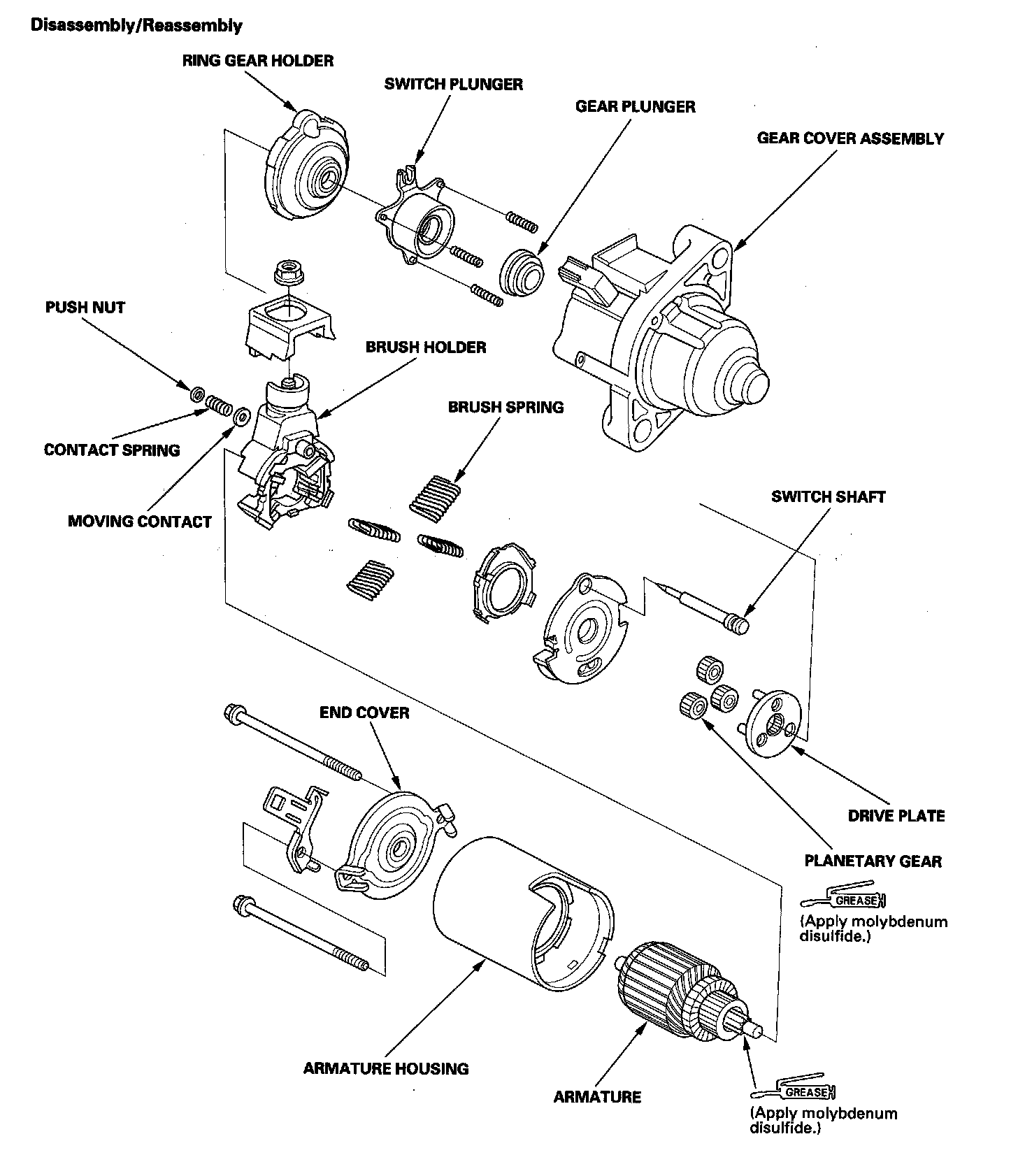 2. Disassemble the starter as shown at the beginning of this procedure.