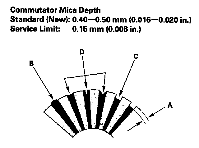 - If the commutator runout is within the service limit, check the commutator for carbon dust or brass chips between the segments.