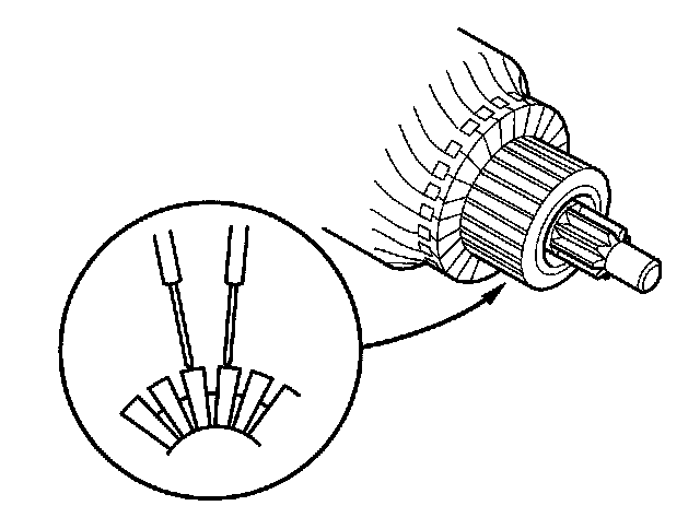 8. Check for continuity between the segments of the commutator. If there is an open circuit between any of the segments, replace the armature.