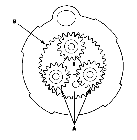 13. Check the planetary gears (A) and internal ring gear (B). Replace them if they are worn or damaged.