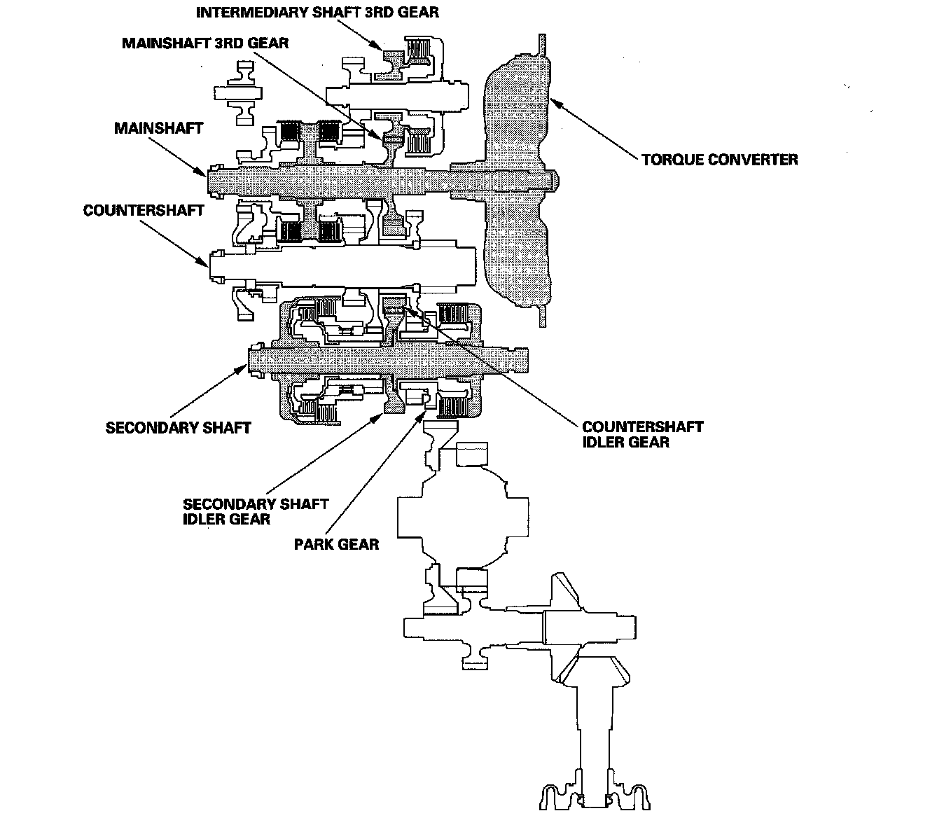^ The mainshaft 3rd gear drives the secondary shaft via the countershaft idler gear and secondary shaft idler gear.