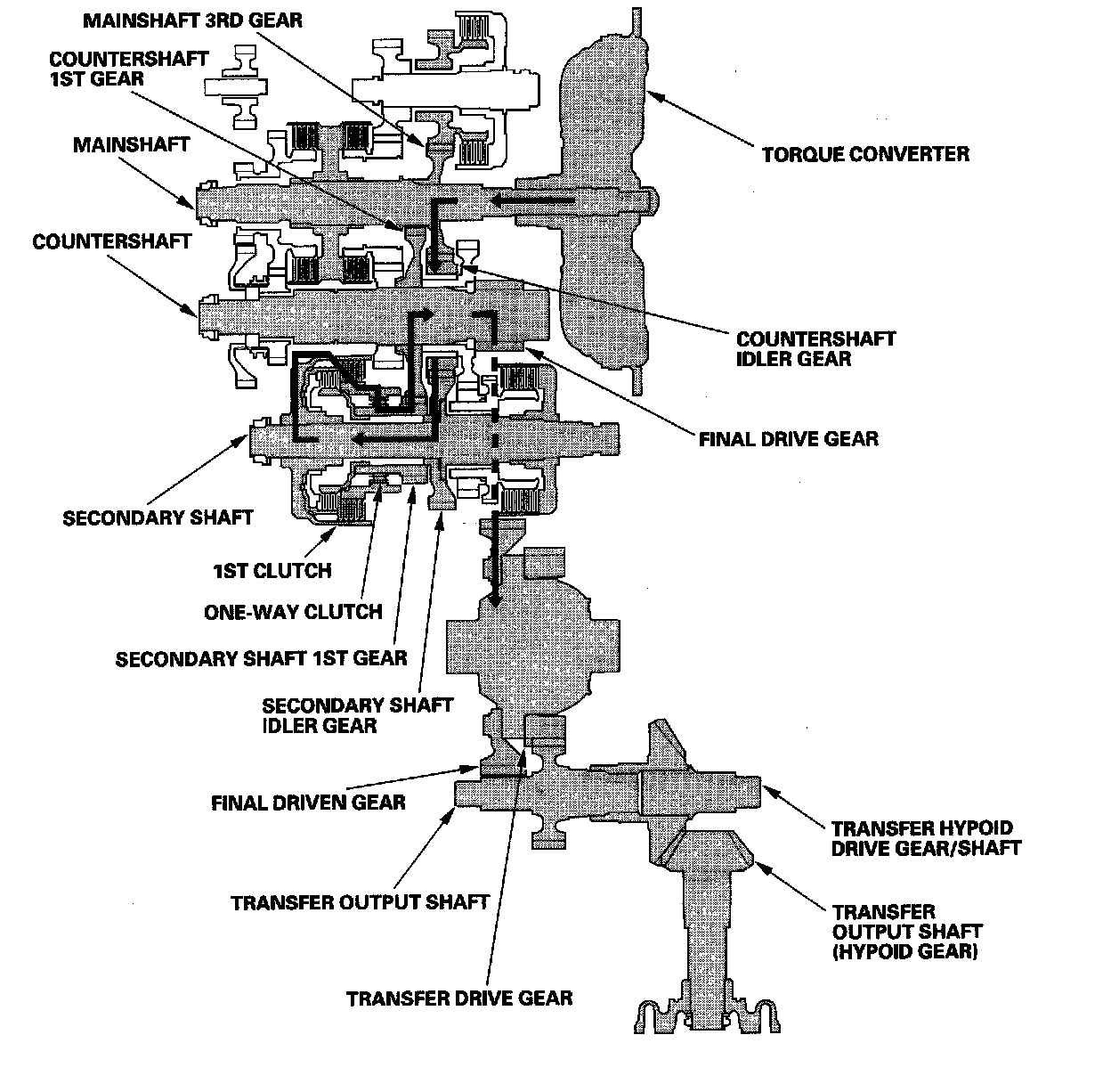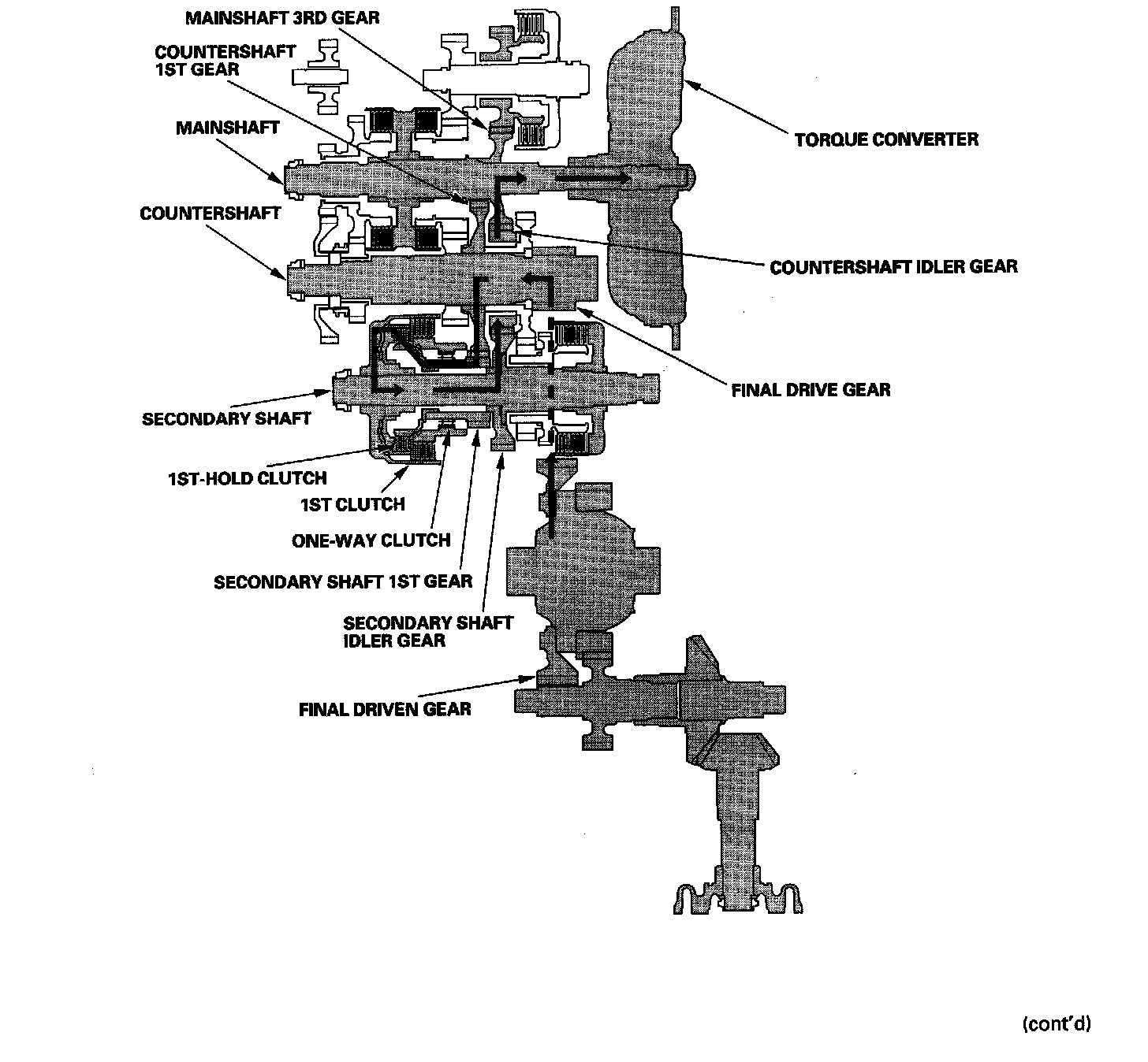 ^ The countershaft 1st gear drives the secondary shaft 1st gear, which is turn drives the secondary shaft via the 1st-hold clutch.