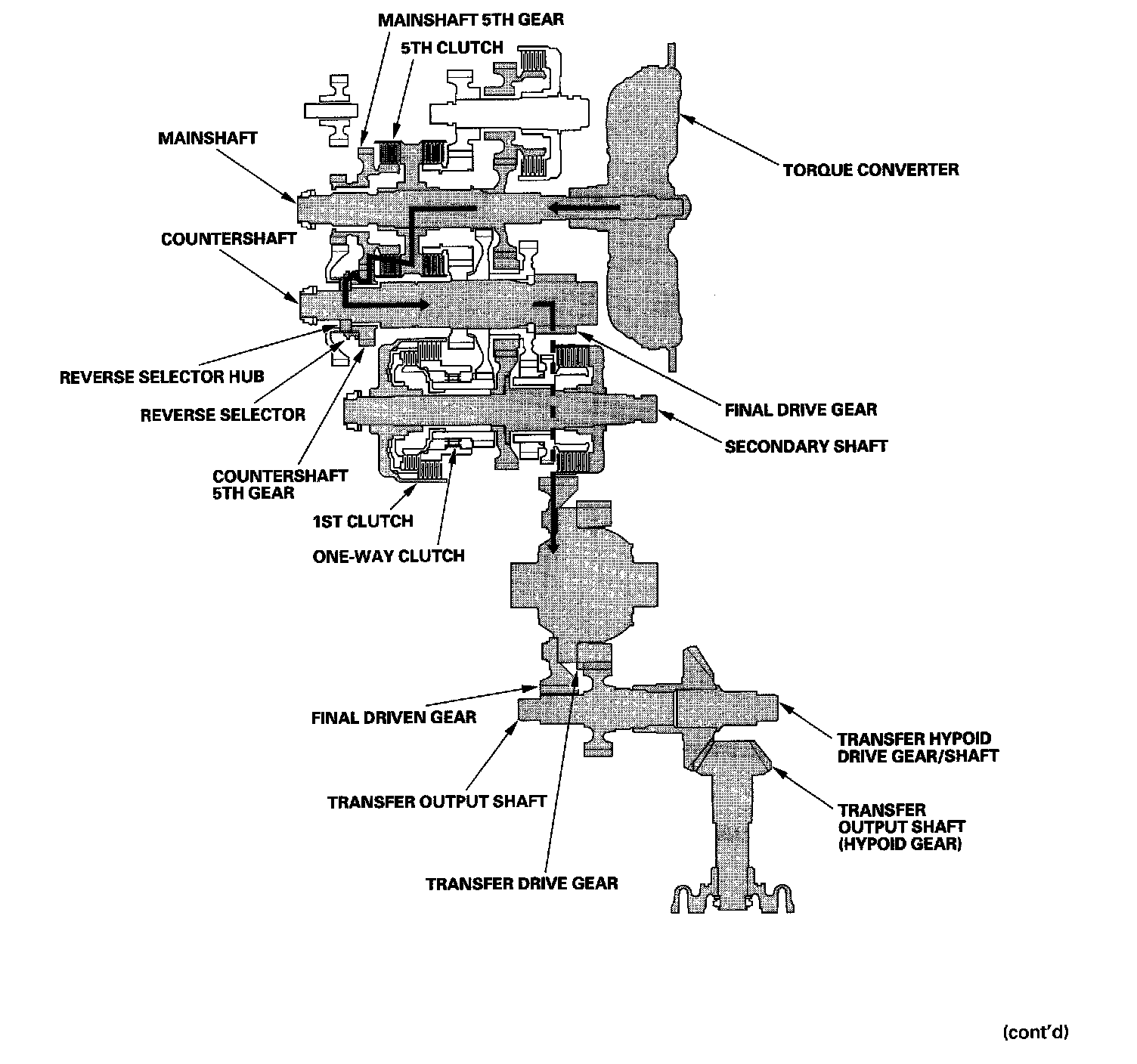 ^ Hydraulic pressure is applied to the 5th clutch, then the 5th clutch engages the mainshaft 5th gear with the mainshaft.