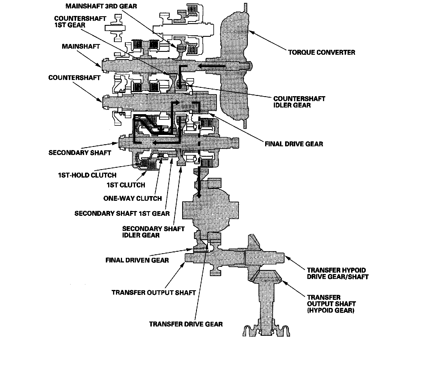 ^ Hydraulic pressure is also applied to the 1st-hold clutch, and the 1st-hold clutch engages the secondary shaft 1st gear with the secondary shaft.