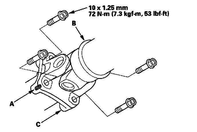 3. Make a reference mark (A) across the propeller shaft (B) and the transfer companion flange (C).
