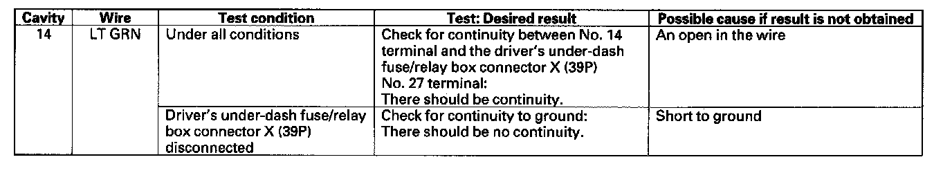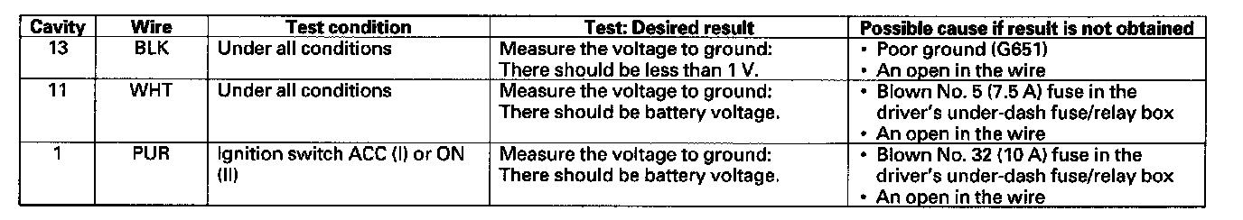 4. Reconnect the connector, and make these input tests at the connector.