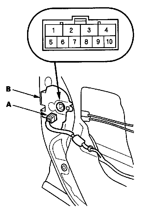 2. Disconnect the 10P connector (A) from the actuator (B).