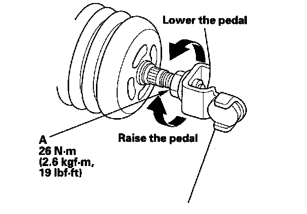 1. Turn the brake pedal position switch (A) counterclockwise, and pull it back until it is no longer touching the brake pedal.