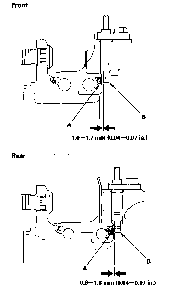 Rear: 0.9 - 1.8 mm (0.04 - 0.07 in.)