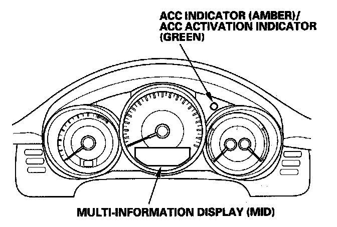If the ACC system is normal, the ACC indicates its operation on the multi-information display (MID) when the ACC switch is ON.