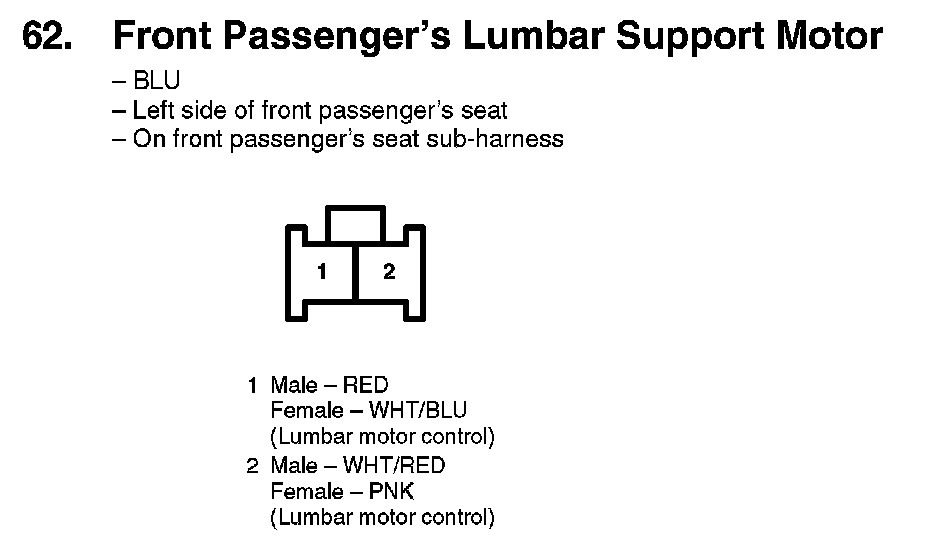 62. Front Passenger's Lumbar Support Motor: