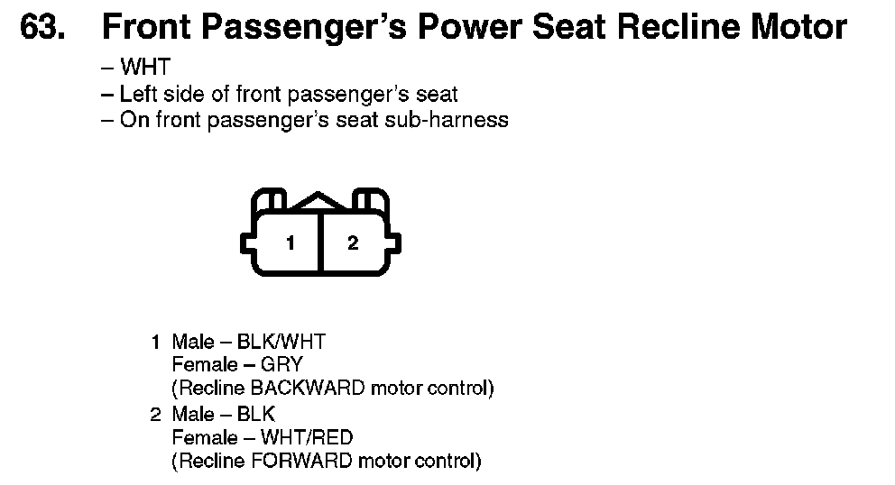 63. Front Passenger's Power Seat Recline Motor: