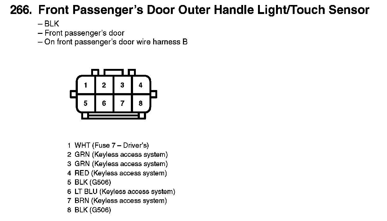 266. Front Passenger's Door Outer Handle Light/Touch Sensor: