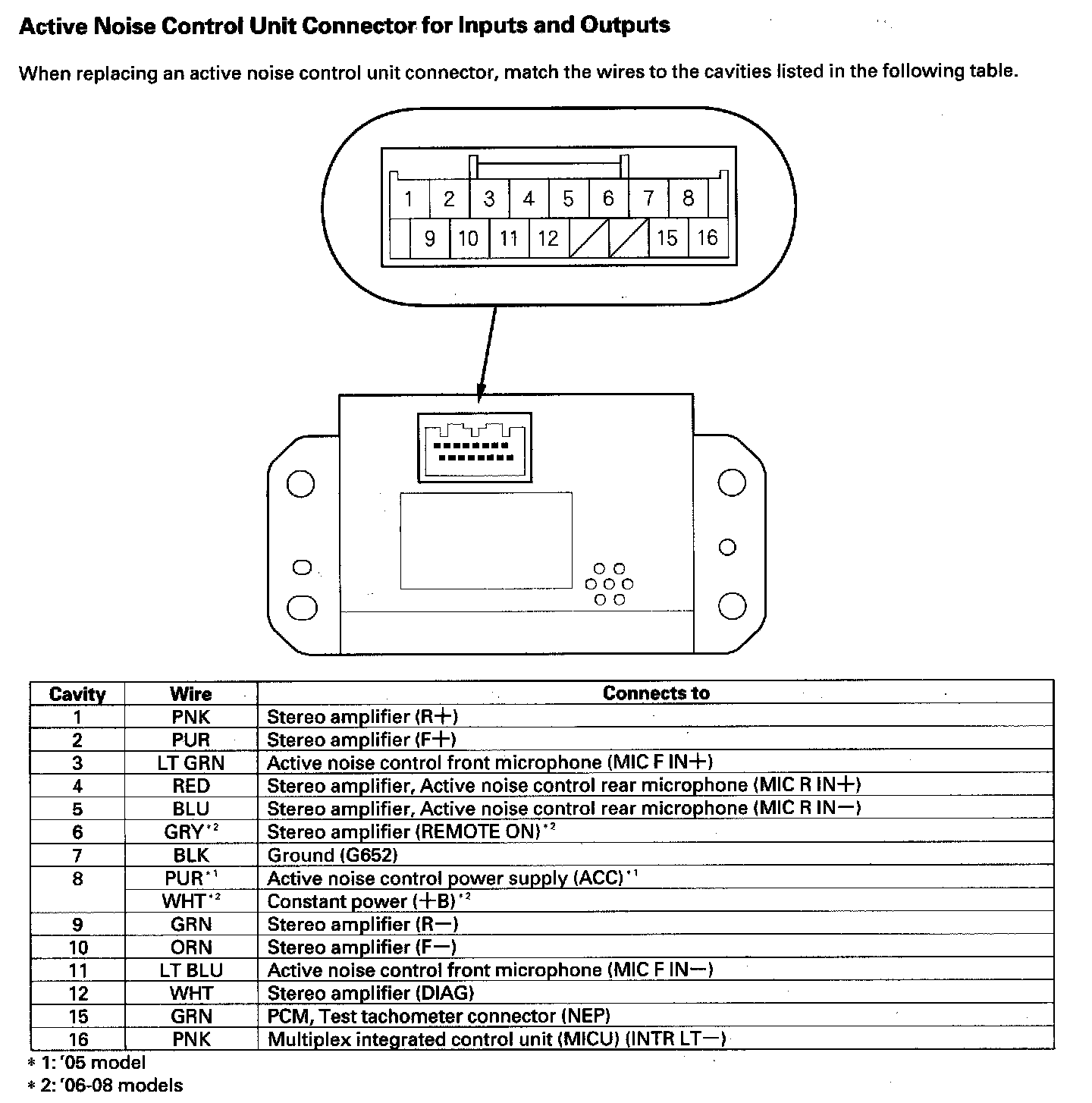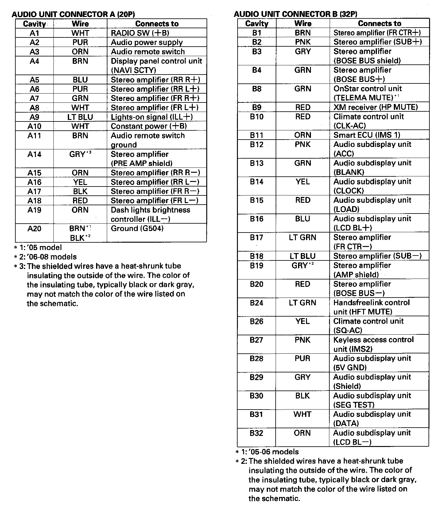AcuraLink Control Unit (XM Receiver) Connector For Inputs And Outputs (With AcuraLink) Part 2: