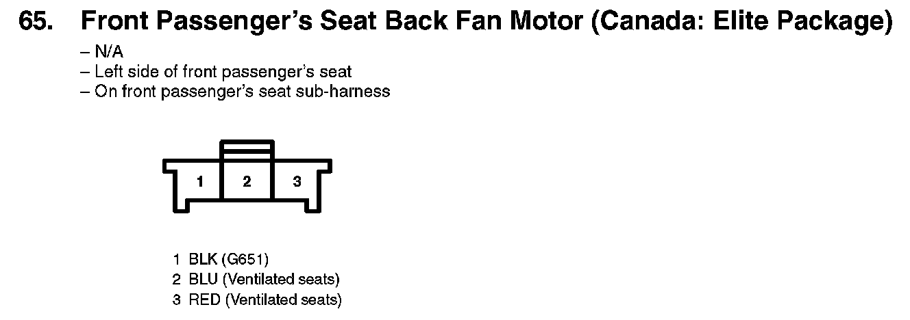 65. Front Passenger's Seat Back Fan Motor (Canada: Elite Package):