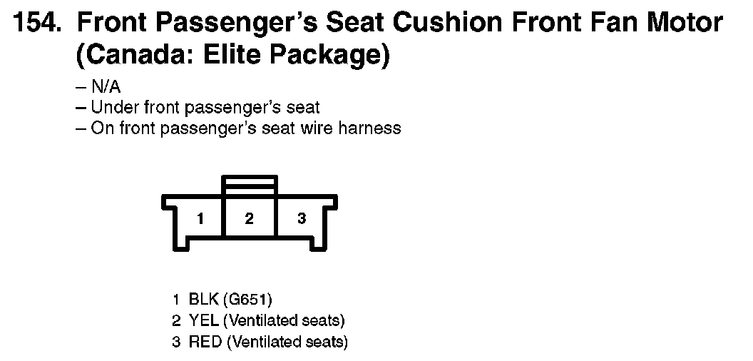 154. Front Passenger's Seat Cushion Front Fan Motor (Canada: Elite Package):