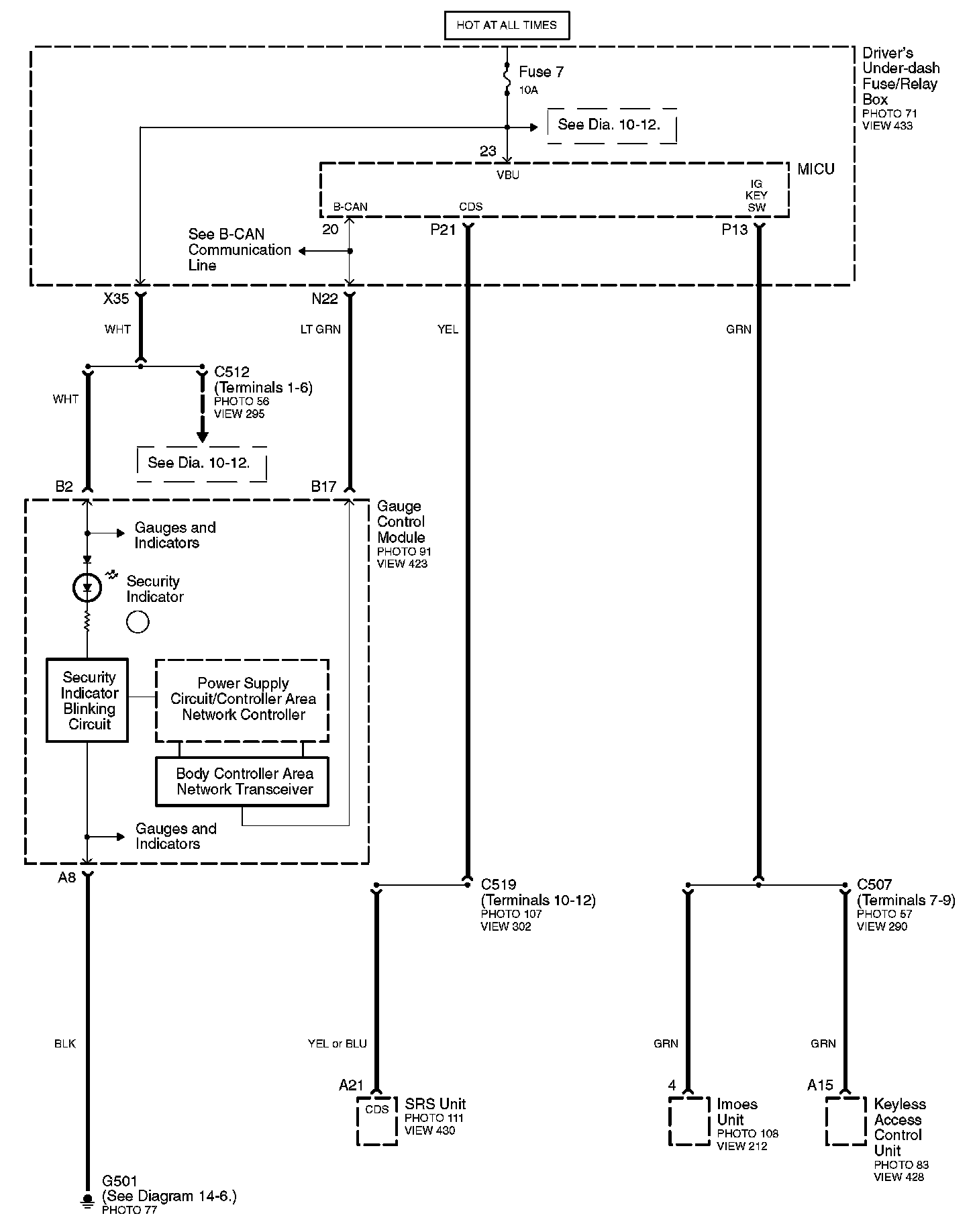 Connector Views: Connector terminal views (references to VIEWS) referred to within these diagrams can be found at Connector Views by View Number. Connector Views By View Number
