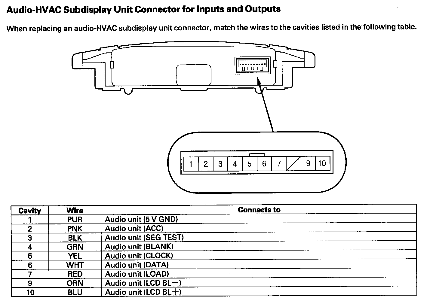 Audio-HVAC Subdisplay Unit Connector For Inputs And Outputs:
