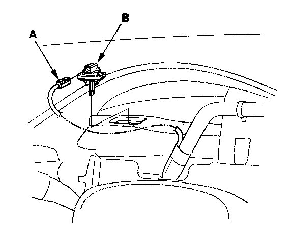 2. Disconnect the connector (A) from the driver's vent air temperature sensor. Remove the driver's vent air temperature sensor (B).