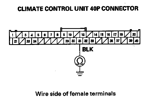 6. Check for continuity between the climate control unit connector No. 31 terminal and body ground.
