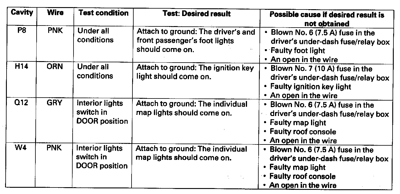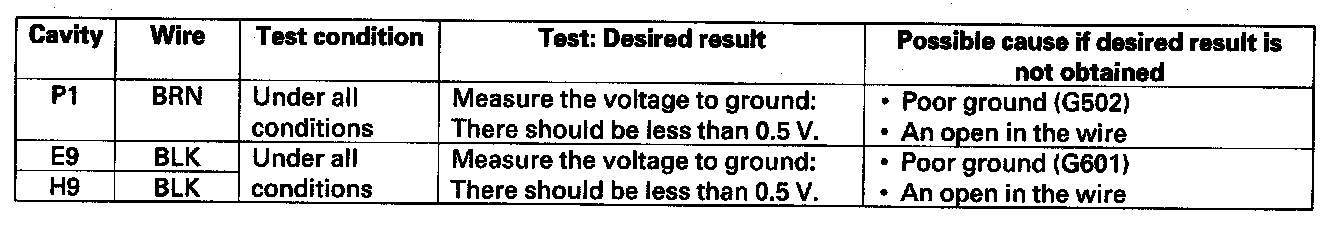 6. Reconnect the connectors to the driver's under-dash fuse/relay box, and make these input tests at the connectors.