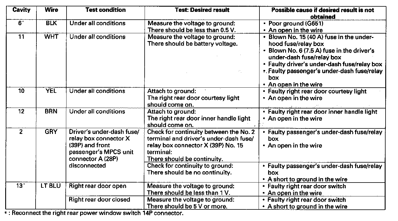 - If all the input tests prove OK, the right rear power window switch must be faulty; replace it.