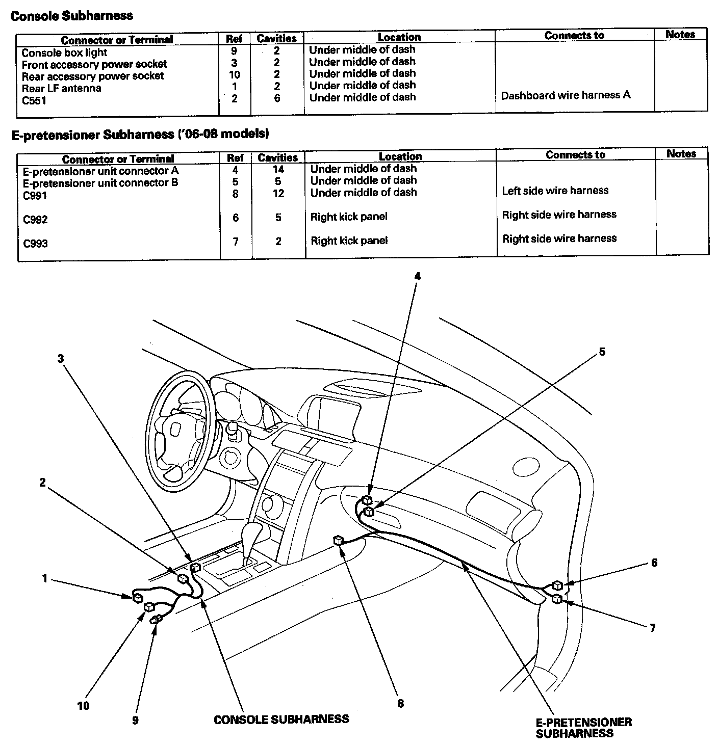 Console Subharness/E-pretensioner Subharness: