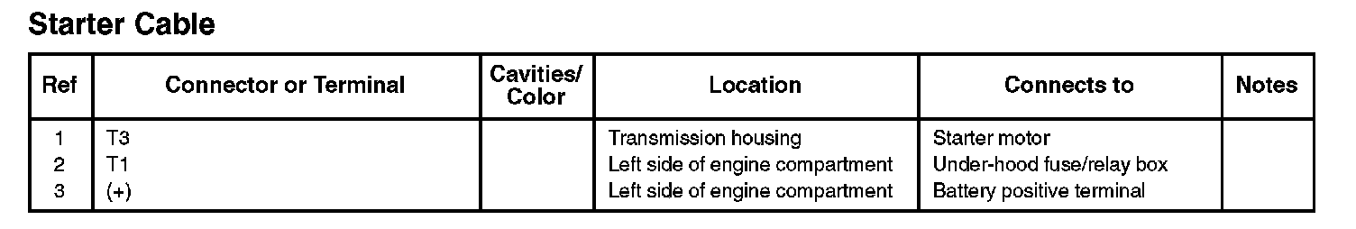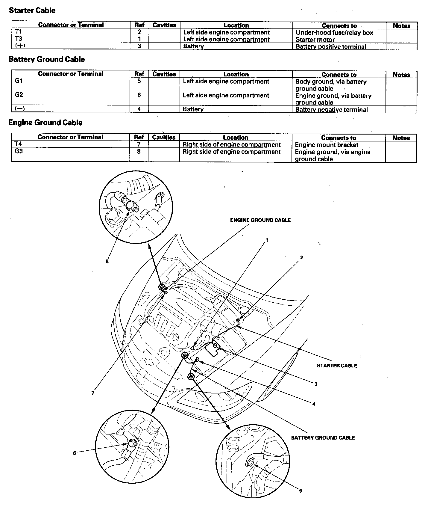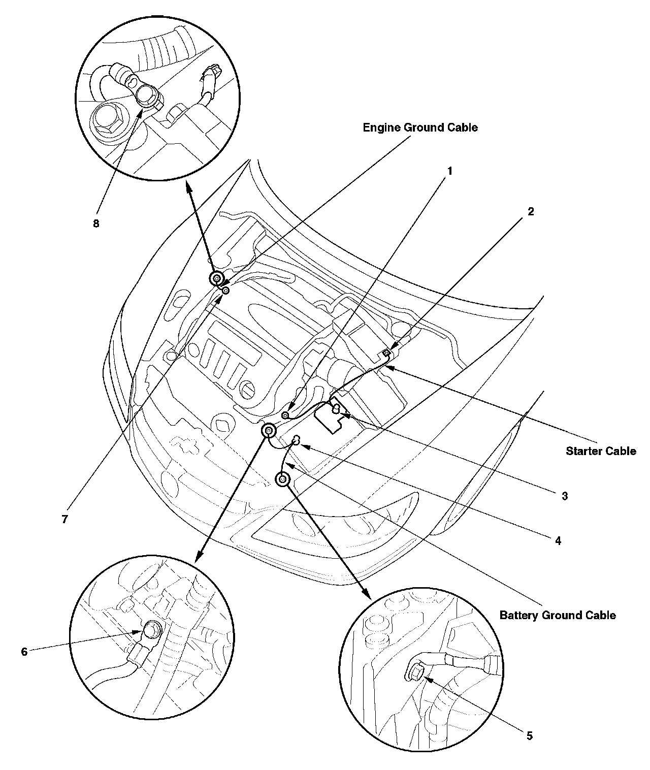 Starter Cable/Battery Ground Cable/Engine Ground Cable: