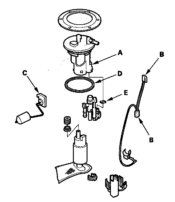- When installing the fuel gauge sending unit (C), make sure the connection is secure and the connector is firmly locked into place. Be careful not to bend or twist it excessively.