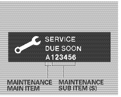 When the remaining engine oil life is 15 to 6 percent, the multi-information display shows a "SERVICE DUE SOON" message along with the maintenance schedule code indicating the main and sub items required at the time of the oil change. For an explanation of Maintenance Minder Codes and what service should be performed, refer to the articles under "Maintenance Reminder Service Codes".