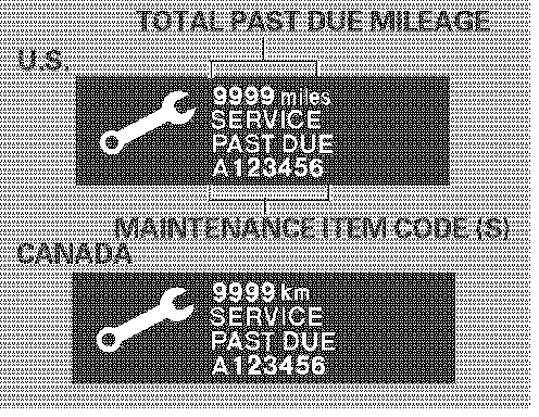 If the indicated required service is not done and the remaining engine oil life becomes 0%, the multi-information display will show a "SERVICE PAST DUE" message, the total mileage after the remaining oil life became 0%, and the maintenance item code(s).
