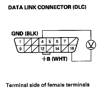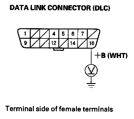25. Measure voltage between DLC terminal No. 16 and body ground.