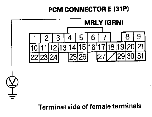 55. Measure voltage between PCM connector terminal E5 and body ground.