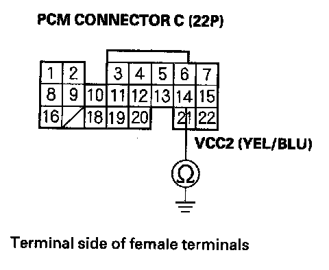 68. Check for continuity between PCM connector terminal C14 and body ground.